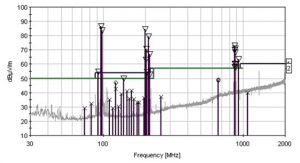 Cihazın yarattığı elektromanyetik enerji bir güç kaynağı kablosuna iletilir ve cihazın bir güç kaynağına gönderebileceği parazit miktarını azaltmak için bu emisyonlar ölçülür. Bu sayede cihazın çevresindeki diğer cihazları etkilemesi önlenir.